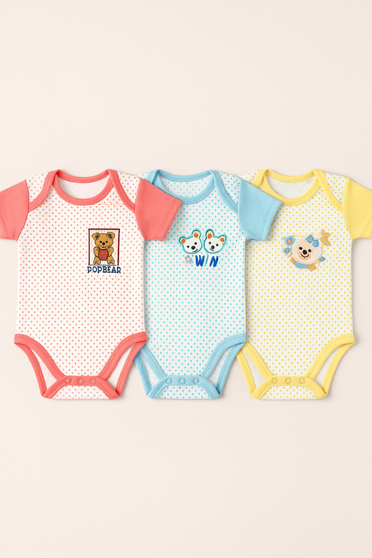 3-Pack Baby Bodysuits (0–9 Months)