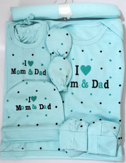 5-Piece Newborn Gift Set | 0–3 Months – “I ❤️ MOM & Dad”