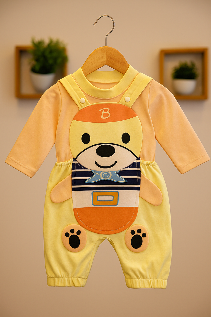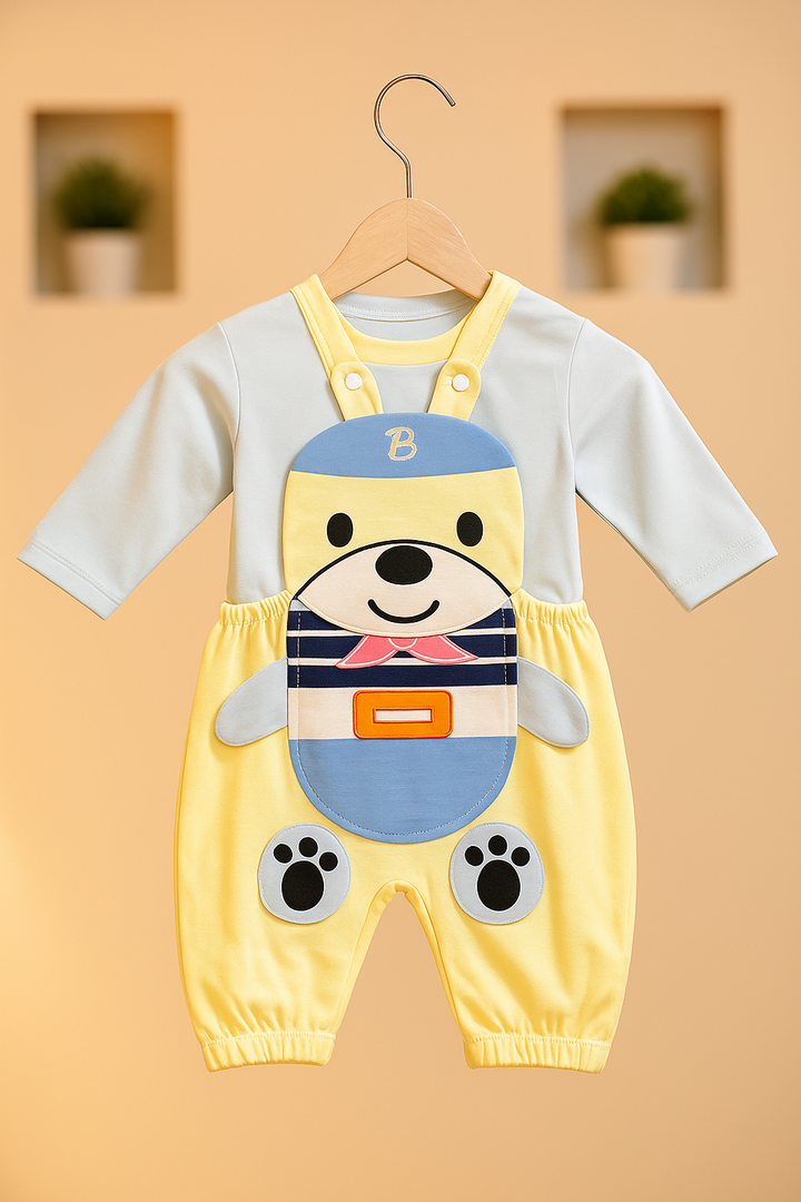 Dress your little one in ultimate cuteness with this bear-themed romper set. Featuring a playful bear face design with paw details, this romper is made from soft, breathable fabric to keep your baby comfy all day. Perfect for playtime, outings, or casual wear. Comes as a complete set with a matching inner top.