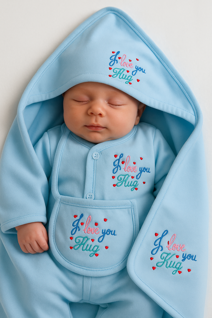 Dress your newborn in comfort and style with the "I Love You Hug" 5-Piece Baby Blue Newborn Outfit Set. Crafted from soft, breathable cotton, this unisex set ensures gentle care for delicate skin. The coordinated pieces provide versatile layering options, making dressing effortless for parents while keeping your baby cozy throughout the day. Ideal for everyday wear or special moments, this set combines practicality with a tender design that celebrates your little one’s first hugs.